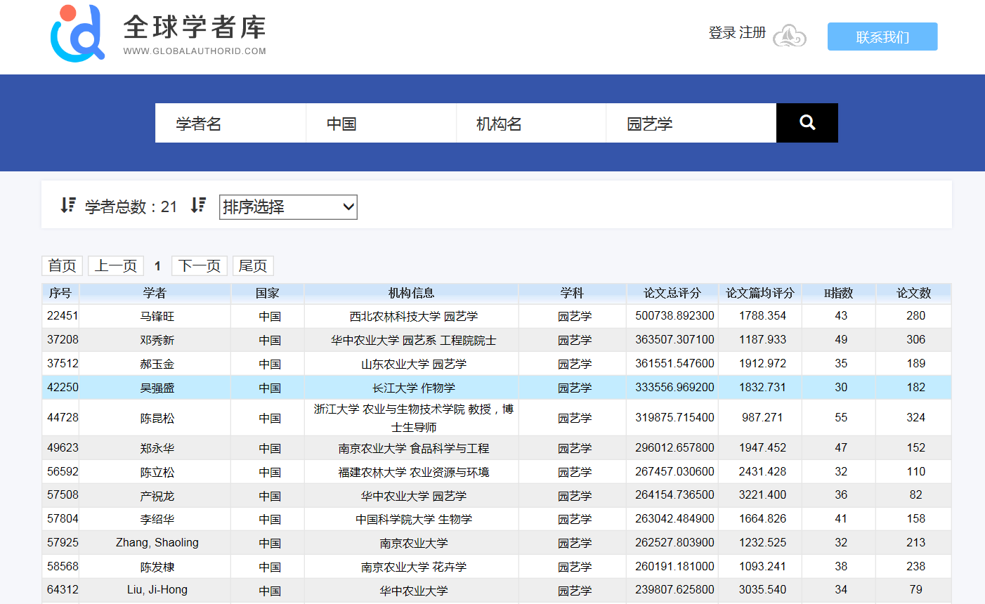 近日,国内全球学者库网站(http://www.globalauthorid.com/)公布了“全球顶尖前10万科学家排名”。公司beats365吴强盛教授以论文总评分333556.9692、论文篇均评分1832.731、论文数182、H指数30,入选该项排名,位居全球42250名,在国际园艺学科排名第23位,国内园艺学科排名第4位。