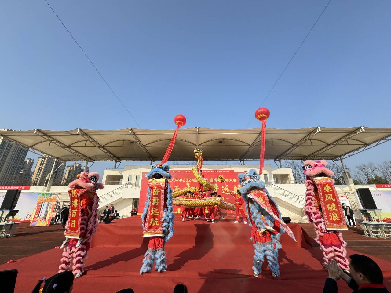 在本次招生宣传期间,恰逢湖北省武穴中学举办2024届成人礼暨高考誓师大会,beat365官网中文舞龙舞狮队应邀参加开场表演,为高三学子加油鼓劲、喝彩助威。
