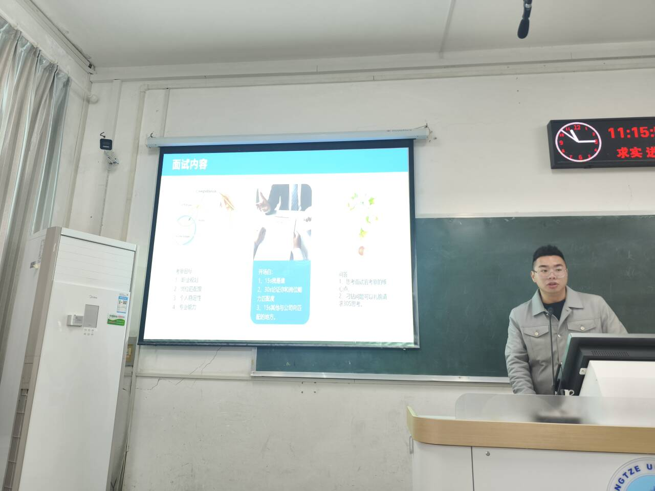 此外,黄浩员工还分享了求职陪跑的相关指导。从简历制作、面试技巧到心态调整,他给出了全面且实用的建议,帮助员工做好求职准备。讲座结束后,同学们积极与黄浩员工交流,员工耐心解答疑问,给出个性化建议。