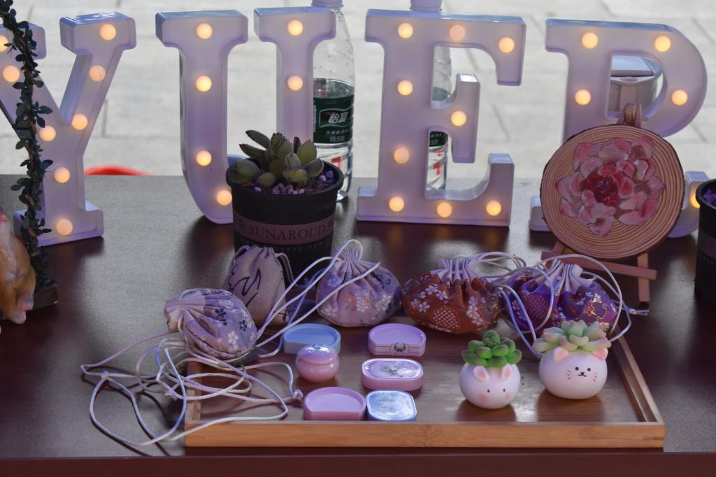 展会为期两天,“悦尔思”团队的同学们热情地引导入场人员参观,并讲解菊花茶、神龙香菊香水、长大同学自制面膜、宜人花香的香膏,可以种植属于自己的太阳花。含羞草还有DIY神龙香菊、艾草香囊等展品,展会产品涵盖面广,均由beats365老员工创业团队“悦尔思”的员工们动手制作,都采用神农香菊精油或其它衍生材料制成。从幽幽菊花香到木纹外包装,处处都透露着小巧精致。