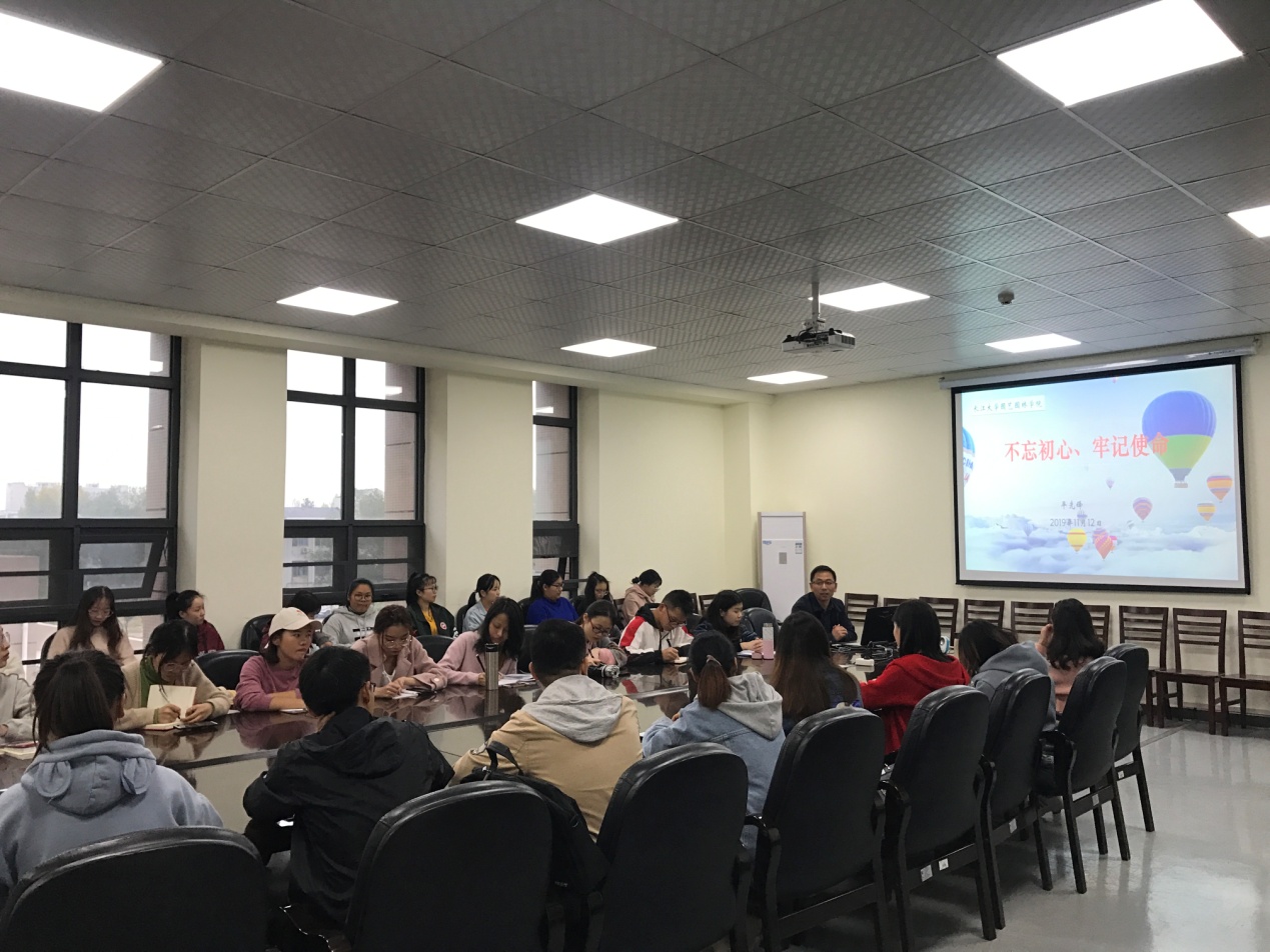 (通讯员:古青玉 黄欣茹)为深入贯彻落实习近平总书记在“不忘初心、牢记使命”主题教育工作会议上的重要讲话精神,2019年11月12日下午3:50,beats365“不忘初心、牢记使命”主题教育党课在农科大楼3002会议室开展。公司党委副书记平先锋围绕“不忘初心、牢记使命”给同学们上了一堂生动精彩的党课。到场学习的同学有beats365本科生党支部全体员工党员、2019年下半年入党积极分子与发展对象、员工会主要员工干部。