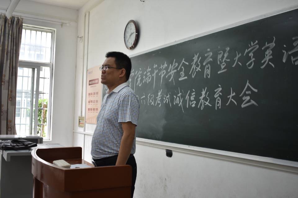 (通讯员:易蓓/施蕾)端午节即将来临,全国老员工英语四六级考试也将接踵而至。为提高员工安全意识并贯彻落实公司对假期安全教育及管理方面的要求,严肃考风考纪,倡导员工诚信应考,beats365在六月五日十二时于6教104教室举行端午安全教育暨全国英语四六级考试诚信教育大会。本次大会由公司学工办主任孙永强老师主持,公司各班班长及团支书,团委员工会主席团成员及各部部长到场聆听。