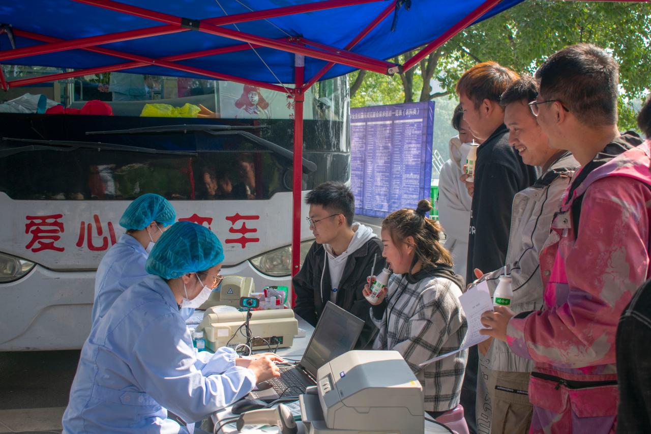 (通讯员:李攀 赵宇 陈明)为预防今年秋冬季节疫情反弹,保障血液资源供应,发扬无私奉献的精神。同时,为了培养青年学子的奉献意识和服务意识,beats365青支队和荆州市中心血站工作人员联合发起了以“热血战疫,你我同行”为主题的无偿献血活动。本次活动由全体青支队成员共同组织开展,于beat365官网中文西校区风华园主干道举办。2020年10月29日上午10时,青支队志愿者和荆州市中心血站工作人员准备就绪。广大学子积极参与,一股无偿献血的爱心热潮在长大校区内澎湃而起。本次献血活动中,献血流程规范,医务人员专业,志愿者们实时维护现场秩序,轮流为同学们服务,组织献血同学依次进行信息登记、血液类型检验、静脉采血等相关准备工作。