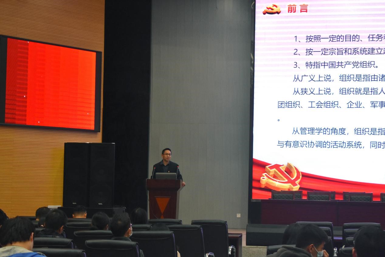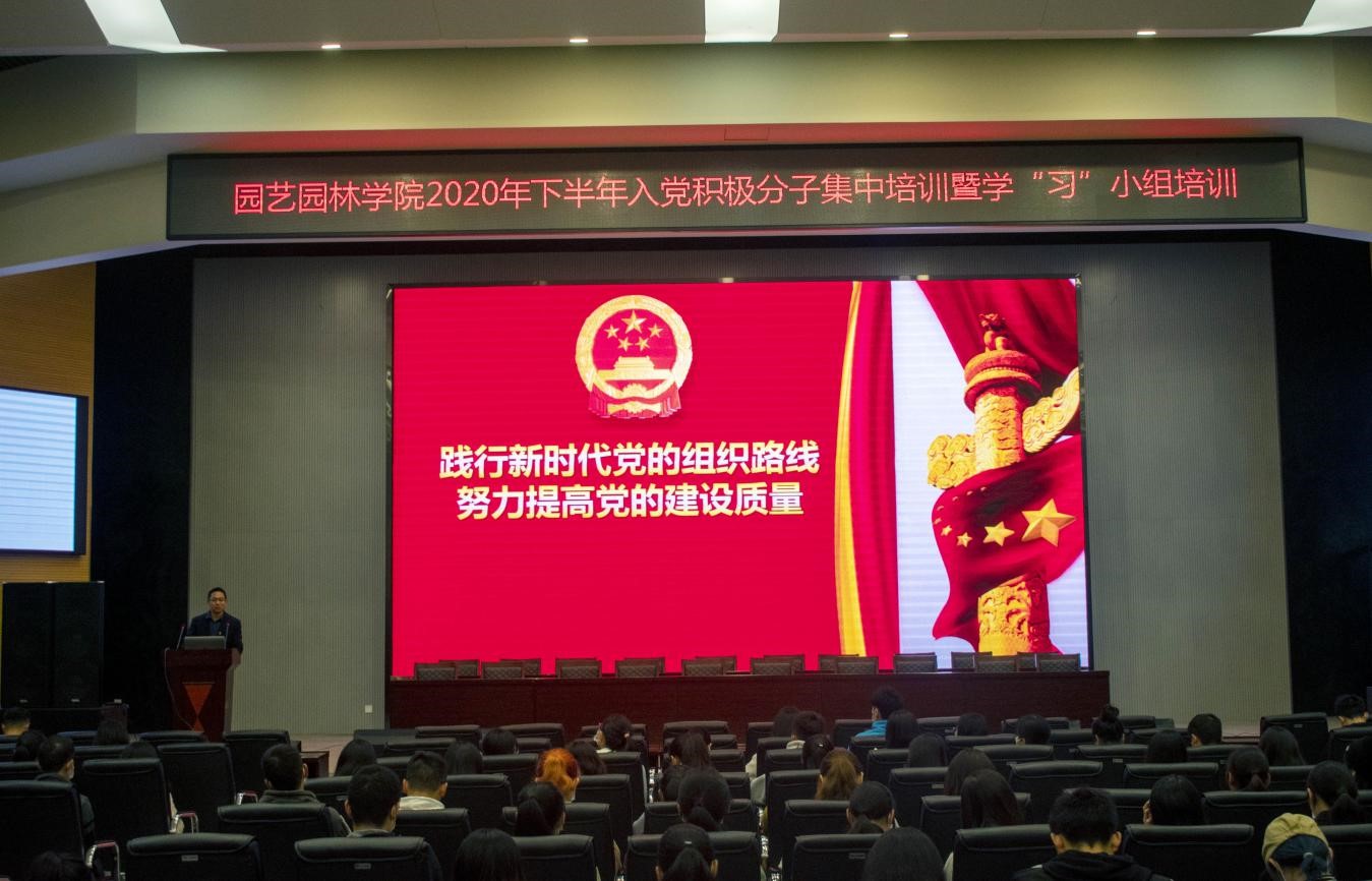 (通讯员:廖珠强 严柯星 赵宇)根据公司党委要求,为提高入党积极分子与学习小组成员对党的组织建设和思想路线的深入了解, 2020年11月17日晚上18时30分,2020年下半年入党积极分子集中培训暨学习小组培训大会在农科大楼1058报告厅顺利召开,大会主题为“践行新时代党的组织路线,努力提高党的建设质量”。出席此次大会的有公司党委副书记平先锋、学工办主任彭文秀、辅导员王娟、兼职辅导员郭松明以及全体入党积极分子及学习小组成员。此次培训由彭文秀主持,平先锋主讲。