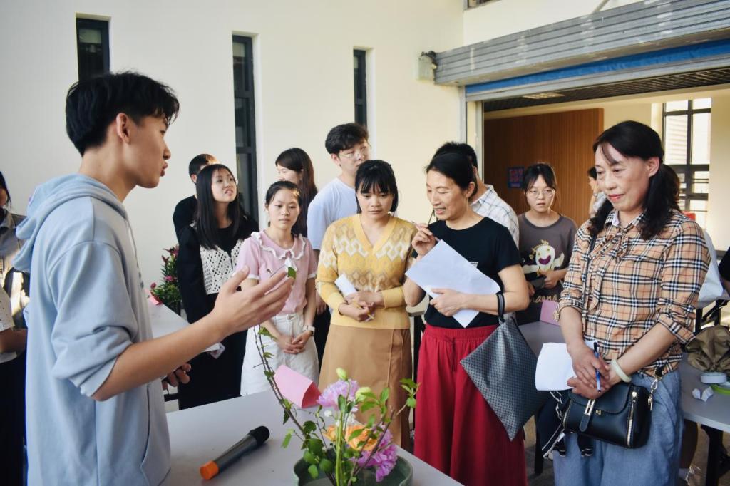 在一段热烈的开场舞后,李秋杰发表致辞演讲。“芳菲歇去何须恨,夏木阴阴正可人。”李秋杰评委表示插花艺术带来的不只是美的享受,更熏陶了心灵。设计大赛分为现场插花和作品点评两部分。插花完成后,各位评委按照顺序依次参观、评价参赛作品。