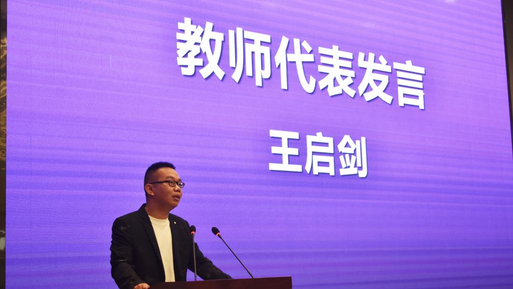 随后,教师代表王启剑以“立志”、勤学、改过、责善“为切入点,结合自己的学习经历,教导员工“知行合一”精神最好的践行就是“立志、勤学、改过、责善”。