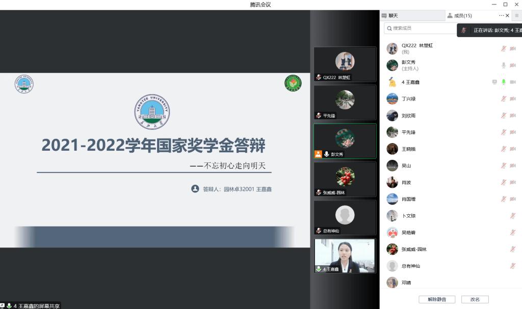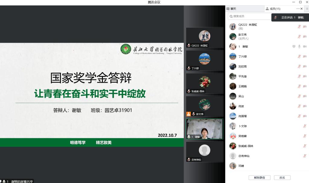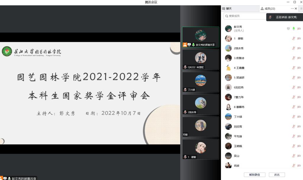 (通讯员:彭文秀)根据beat365官网中文《关于开展2021-2022学年本科生国家奖学金初评工作的通知》等文件精神,2022年10月7日上午9:30,为符合疫情防控要求,公司在腾讯会议线上举行了2021-2022学年本科生国家奖学金评审答辩。公司党委书记丁兴禄老师、党委副书记平先锋老师、副经理肖波副教授、经理助理肖国增副教授、风景园林系张威威副教授、园艺系姚振老师、学籍秘书王晓娥老师、辅导员卜文琼、吴山老师和各年级员工代表等参加了此次面试评审会,会议由学工办主任彭文秀主持。