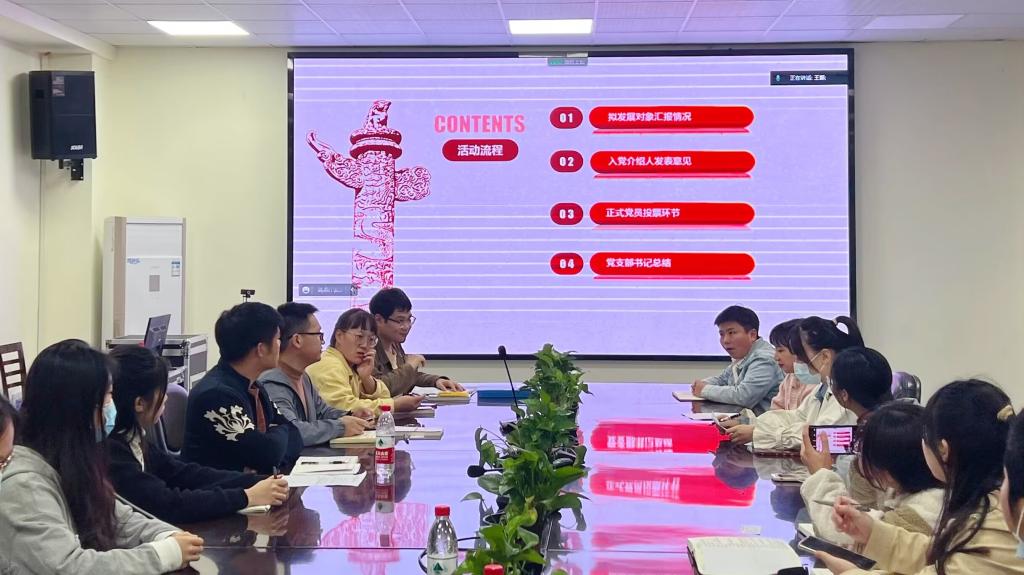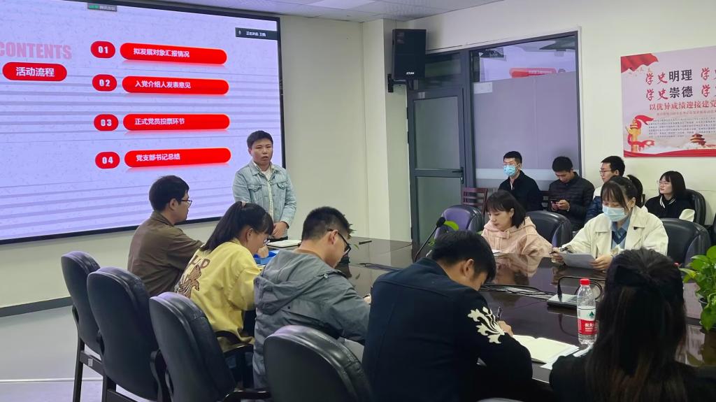 本次座谈会议程主要包括拟发展对象汇报情况、入党介绍人发表意见、征求党员意见环节、党支部书记总结四个部分。会议开始,杨思月等五名入党积极分子宣读了入党志愿书,从自己的入党动机、本人经历、思想状况、学习情况等方面进行了汇报;入党介绍人介绍入党积极分子的基本情况并发表意见,随后党支部成员根据入党积极分子的汇报情况和入党介绍人的意见展开充分讨论,最后第一党支部和第二党支部同志通过无记名的投票方式进行投票,赞成杨思月等5名同学发展为发展对象。
