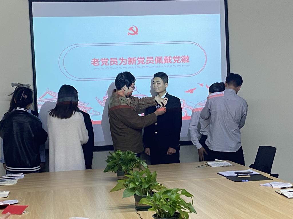 预备党员转正大会上,魏来等6名预备党员分别对自己一年预备期的学习、生活和工作等基本情况进行了汇报,随后培养联系人分别对6名预备党员在一年预备期的表现发表了意见,肯定了进步,但同时也指出了他们的不足和缺点。会上,在党支部书记吴山老师的提议下,支部全体党员根据6名预备党员的汇报情况以及培养联系人的意见分别对其进行了党的基本理论知识的提问考察,紧接着进行了无记名投票,大会宣布了对于魏来等同志能否按期转正的投票结果,魏来等6名预备党员的赞成票均超过有表决权党员的半数,大会一致通过接收魏来等6名同志按期转正。最后,老党员为新党员佩戴党徽,党支部书记吴山老师总结了此次大会,并对6名新党员也提出了相关要求,号召我们全体党员要做好表率,牢记自己入党的初心,对在座同志提出的问题自查自改,不断提升自己,争取成为一名优秀的共产党员,无愧于国家,无愧于人民。