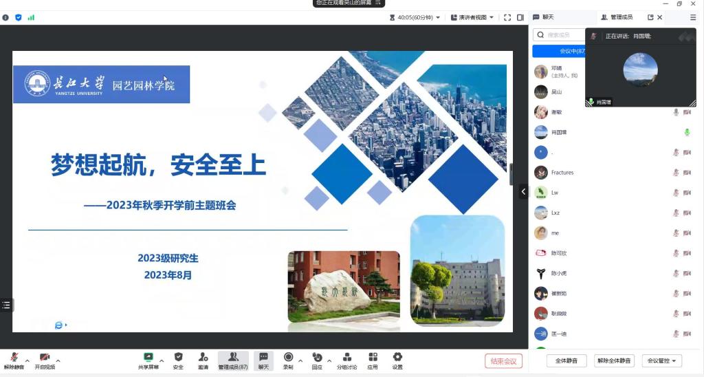 (通讯员:邓婧)闻着金秋的气息,迎着收获的季节,又步入新学期工作和学习的旅程。2023年8月24日上午10点,beats365组织2023级研究生线上召开以“梦想启航,安全至上”为主题的开学前主题班会。
