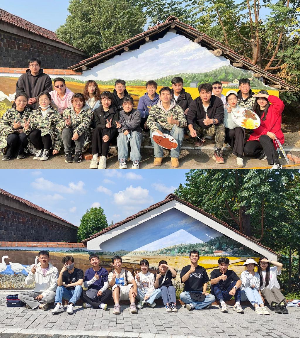 调研结束后,师生前往旁边的丰收村回顾之前在此开展的共同缔造工作,并向村民们表示慰问。在共同缔造现场,低年级员工认真学习上一届完成的景观落地成果;而参与了丰收村共同缔造活动的研究生们故地重游,回顾自己的劳动成果,昔日艰苦但美好的回忆再一次浮现眼前,同时也唤起了同学们作为风景园林人助推乡村振兴的初心使命。