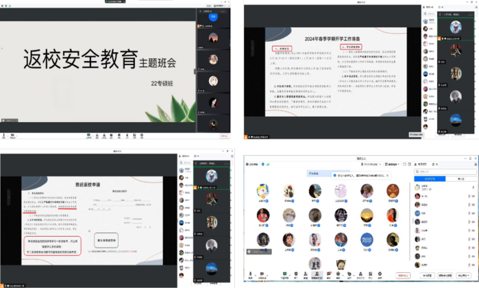 在会议中,各年级辅导员带领同学们一起学习了《关于做好2024年春季学期开学工作准备的通知》,并对员工提前返校、延迟返校等情况提出了具体的要求,同时提醒同学们关注路途天气变化,妥善安排行程,注意返校途中的交通安全,不乘黑车、不乘超载车,避免交通事故的发生。