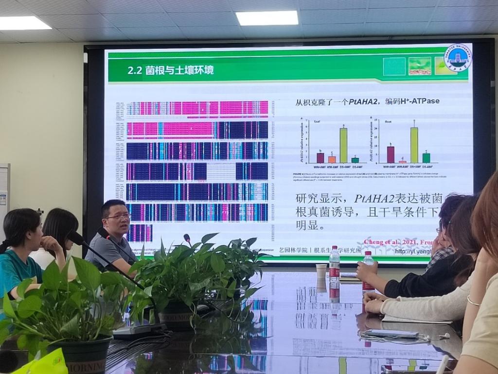 在讲座中,吴强盛教授首先详细介绍了丛枝菌根的特点,指出菌根对于柑橘生产的重要性。从菌根与水分吸收、土壤环境和抗氧化的等方面分析菌根增强柑橘抗旱性的潜在机制,总结了丛枝菌根真菌在金水柑、爱媛28杂柑和伦晚脐橙上的应用。