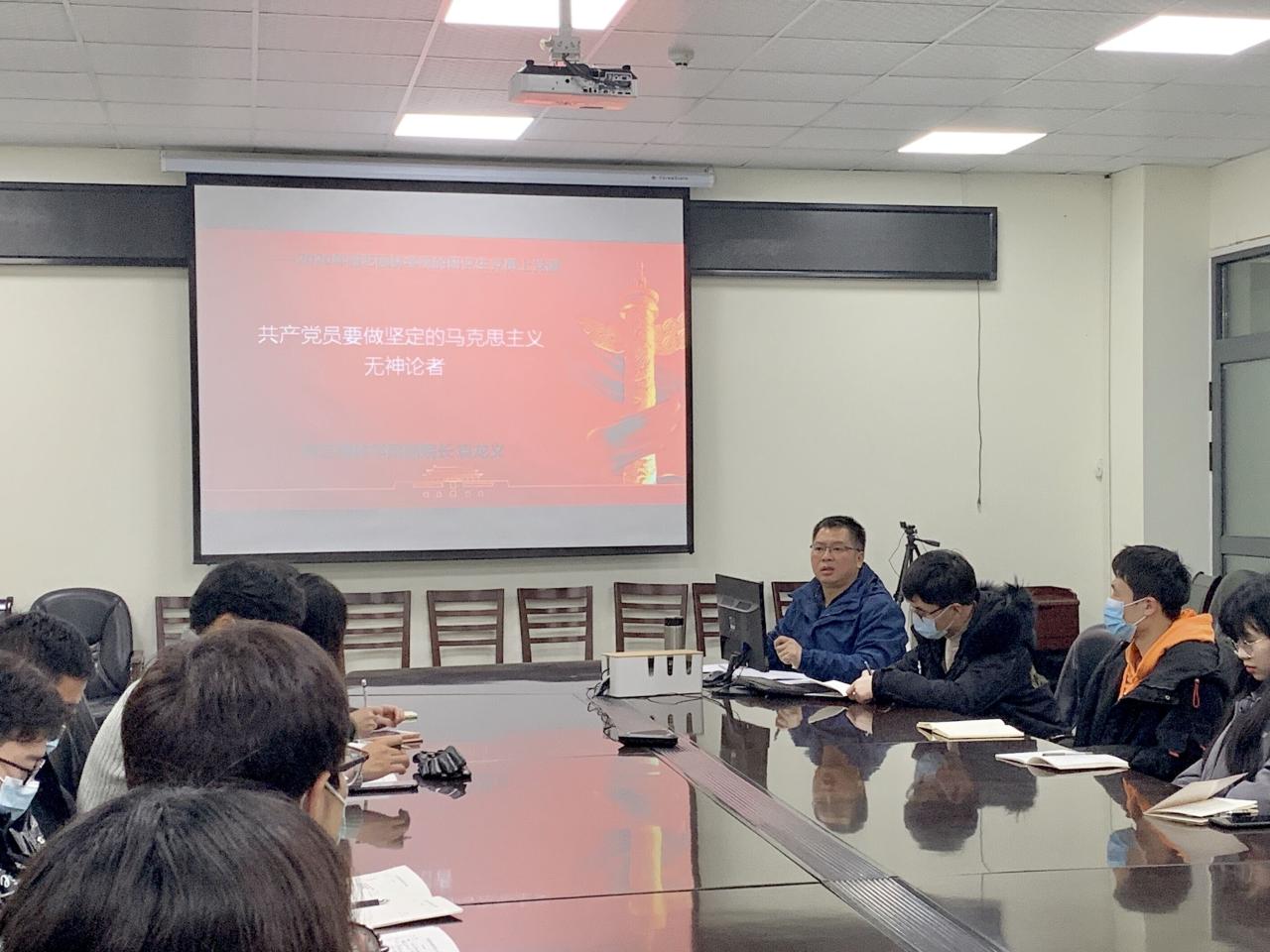 12月4日晚上beats365分管研究生教育的副经理袁龙义教授给公司的研究生党员在农科3002室上党课,主要宣讲“共产党员要做坚定的马克思主义无神论者”、“我是党员 我要奉献”二个内容。