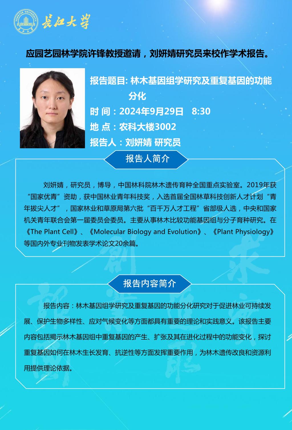 园林讲坛(2024年第十五讲):林木基因组学研究及重复基因的功能分化