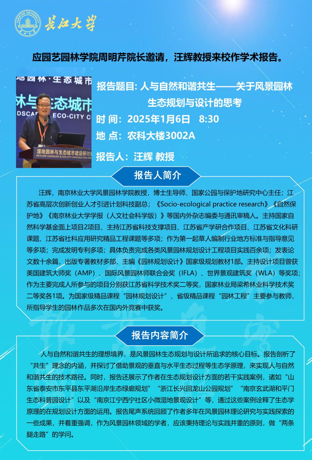 园林讲坛(2025年第二讲):人与自然和谐共生——关于风景园林生态规划与设计的思考