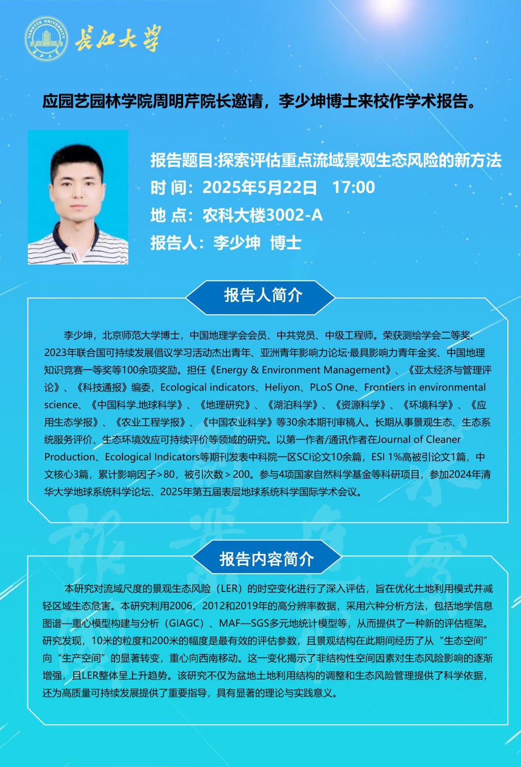 园林讲坛(2025年第十讲):探索评估重点流域景观生态风险的新方法
