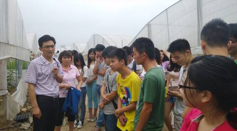 设施基地技术员给同学们讲解园艺植物的设施生产技术